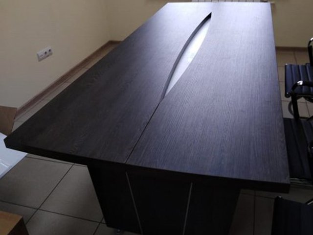 Современные решения в оформлении побудят своего обладателя двигаться к новым глубинам и вершинам бизнеса. Это кабинет для директора, старающегося быть лучшим, устанавливающего определенные цели, ставящего осуществимые задачи. Тонированные стекла, окаймленные алюминием, отличная надежность, утонченные формы, натуральные оттенки дерева — все это непременно поможет привнести в офис необходимую атмосферу комфорта и работоспособности. У любого начальника присутствуют документы и вещи, содержать которые стоит в строгой секретности, вследствие чего верхние отделения тумб запираются на замки, а в греденции за произведенными из стали жалюзи может укромно притаиться сейф.